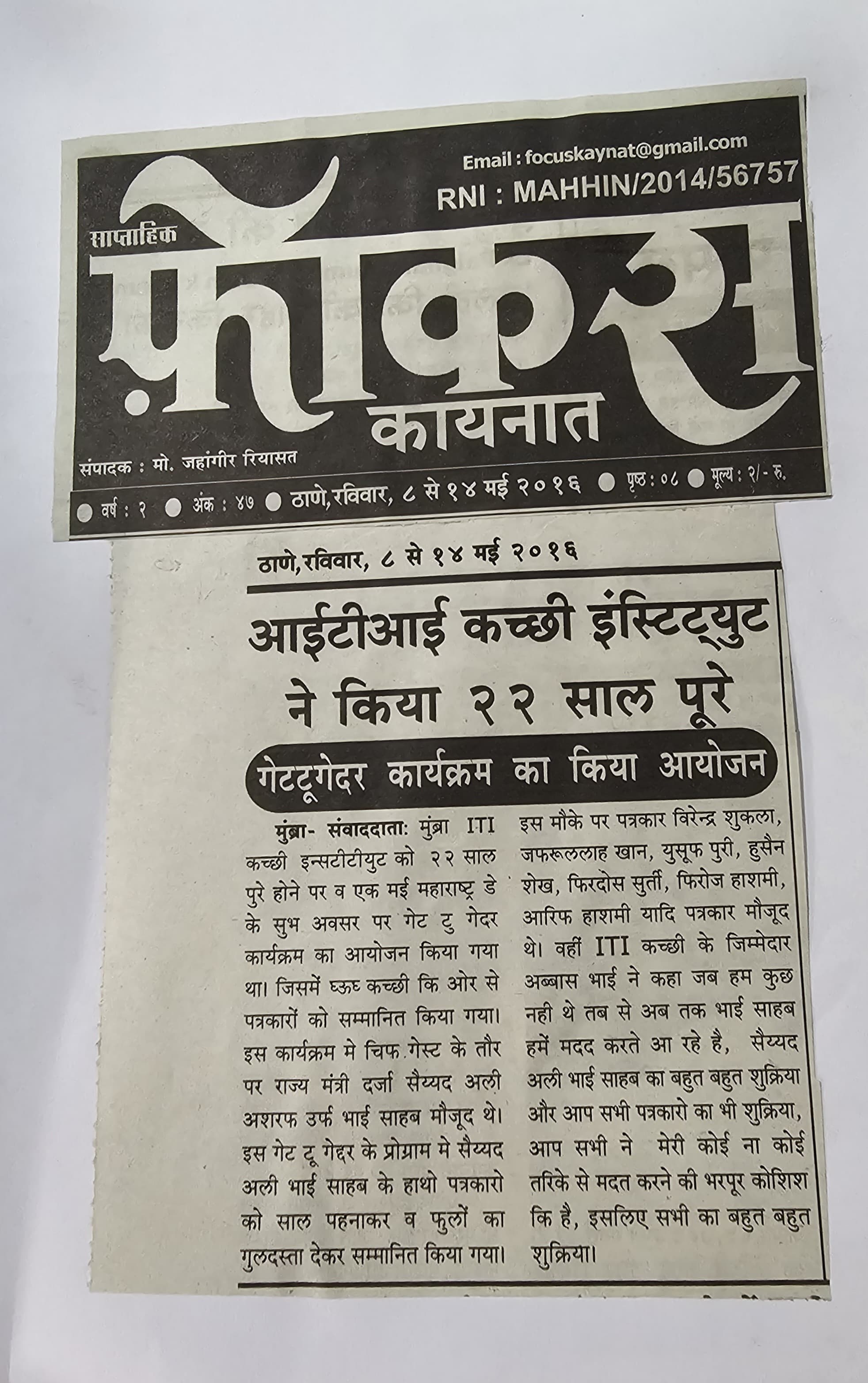 Regn. No. : E-12760 / Thane